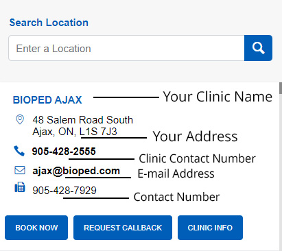 Please enable JavaScript in your browser to complete this form.Please enable JavaScript in your browser to complete this form.1Welcome to BioPed.com Testing App 2Your Clinic Details3Locations Page4Individual Clinic Page5Google Review ToolWelcome to BioPed.com Testing App We are excited to announce the launch of new bioped.com. This app is created for clinics to ensure that all the apps are working fine and there are no outages through locations page and individual clinic pages. Estimated time to complete this testing: 15 mins Start Type Of Clinic *Full ClinicSatellite ClinicYour Clinic Name *Your Name *E-mail Address *Contact Number *PreviousNextLocations Page Our global locations page enables users to locate your clinics. Please use the following checklist to ensure that all the links for your clinic from the locations widget are working fine. Link to locations page: https://www.bioped.com/locations/ Full CLinicPlease make sure all the information of your clinic is appearing correctly on this widget. Please check the button links as well. BOOK NOW: This button should take you to BioPed Connect page of your clinic. You can verify that the link is correct by checking the URL of the page. For example, for Ajax, the URL should be: https://appointments.bioped.com/booking/bioped-ajax/steps/matching/ Request Callback: Request Callback should take you to the clinic's request callback page. Please fill in this form to ensure you are recieving notifications for your clinic via email to your clinic e-mail address. Please ensure: E-mail subject line contains your clinic name All details from the form is captured and listed CLINIC INFO: Clinic info should take you to the individual clinic page. PLEASE MAKE SURE TO CHECK YOUR MAP PIN ON THE WIDGET Please use this checklist to ensure everything is working correctly for you. (Please check the boxes after checking your clinic's information) *All clinic information appears to be correctBOOK NOW button is redirecting to the correct pageREQUEST CALLBACK button is redirecting to the correct page. The form is capturing all information and dataCLINIC INFO button is taking me to the correct pageMy Map pin location is correct Satellite ClinicPlease make sure all the infomration of your clinic is appearing correctly on this widget. Please check the button links as well. Request an appointment: should take you to the individual clinic page. CLINIC INFO: Clinic info should take you to the individual clinic page. PLEASE MAKE SURE TO CHECK YOUR MAP PIN ON THE WIDGET Please use this checklist to ensure everything is working correctly for you. (Please check the boxes after checking your clinic's information) (copy) *All clinic information appears to be correctREQUEST AN APPOINTMENT button is redirecting to the correct pageCLINIC INFO button is taking me to the correct pageMy Map pin location is correctPlease log your errors here to be rectified (if required) Visual Code PreviousNextIndividual Clinic Pages Please ensure all the information on this page appears to be correct. Full Clinic Individual Clinic PagesThings to check on the Individual Clinic Pages: Please ensure the title of the page is correct BOOK NOW: This button should take you to BioPed Connect page of your clinic. You can verify that the link is correct by checking the URL of the page. For example, for Ajax, the URL should be: https://appointments.bioped.com/booking/bioped-ajax/steps/matching/ Request Callback: Request Callback should take you to the clinic's request callback page. Please fill in this form to ensure you are recieving notifications for your clinic via email to your clinic e-mail address. Please ensure: 1) E-mail subject line contains your clinic name | 2)All details from the form is captured and listed Please ensure that you test this on this step again. Please check the address and contact details Please check the opening and closing timings are correct. Incase of these not being correct, please submit a ticket via tickets.bioped.com Please ensure that the staff details are correct. Incase these are not correct, please sumit a ticket via tickets.bioped.com. Please ensure all details are up-to-date on this page: *All clinic information appears to be correctBOOK NOW button is redirecting to the correct pageREQUEST CALLBACK button is redirecting to the correct pageAddress and contact information appear to be correctOperating hours appear to be correctStaff details are correct and updated Satellite Clinic Individual Clinic PagesThings to check on the Individual Clinic Pages: Please ensure the title of the page is correct Request Appointment: No need of testing this form in this step if you have already tested it. Please check the address and contact details. Please ensure that the staff details are correct. Incase these are not correct, please sumit a ticket via tickets.bioped.com. Please ensure all details are up-to-date on this page: *All clinic information appears to be correctAddress and contact information appear to be correctStaff details are correct and updated PreviousNextGoogle Review Tool for your clinic Please test the google review tool widget to ensure you are recieving texts and emails via the app. Get started by visitng: https://www.bioped.com/google-links/ Please follow the steps in the manual to test it: google-review-manual-v2 Please check the boxes that apply:My clinic form can be foundI am receiving SMS via Google Review ToolI am receiving emails via Google Review ToolSubmit
